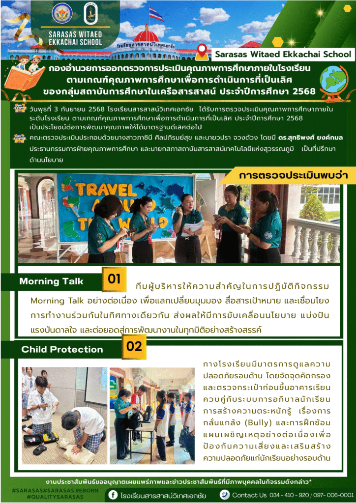 ⭐กองอำนวยการออกตรวจประเมินคุณภาพการศึกษาภายในโรงเรียน ตามเกณฑ์คุณภาพการศึกษาเพื่อการดำเนินการที่เป็นเลิศของกลุ่มสถาบันการศึกษาในเครือสารสาสน์ ประจำปีการศึกษา 2568