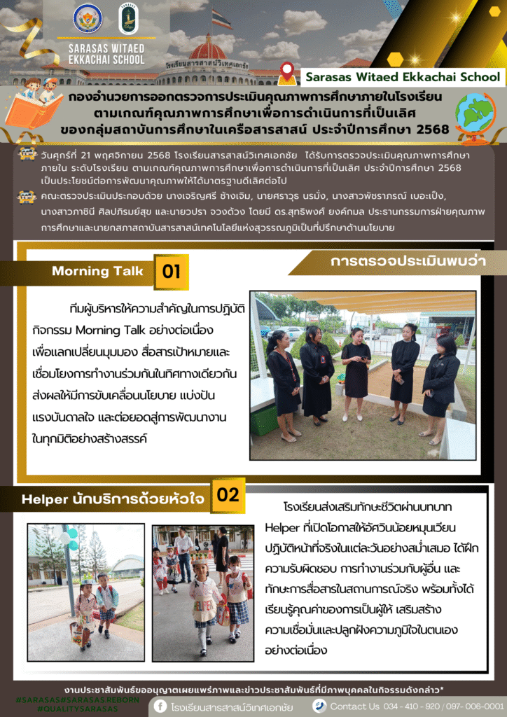 ⚡ ได้รับการตรวจประเมินคุณภาพการศึกษาภายใน ระดับโรงเรียน ตามเกณฑ์คุณภาพการศึกษาเพื่อการดำเนินการที่เป็นเลิศ ประจำปีการศึกษา 2568 เป็นประโยชน์ต่อการพัฒนาคุณภาพให้ได้มาตรฐานดีเลิศต่อไป