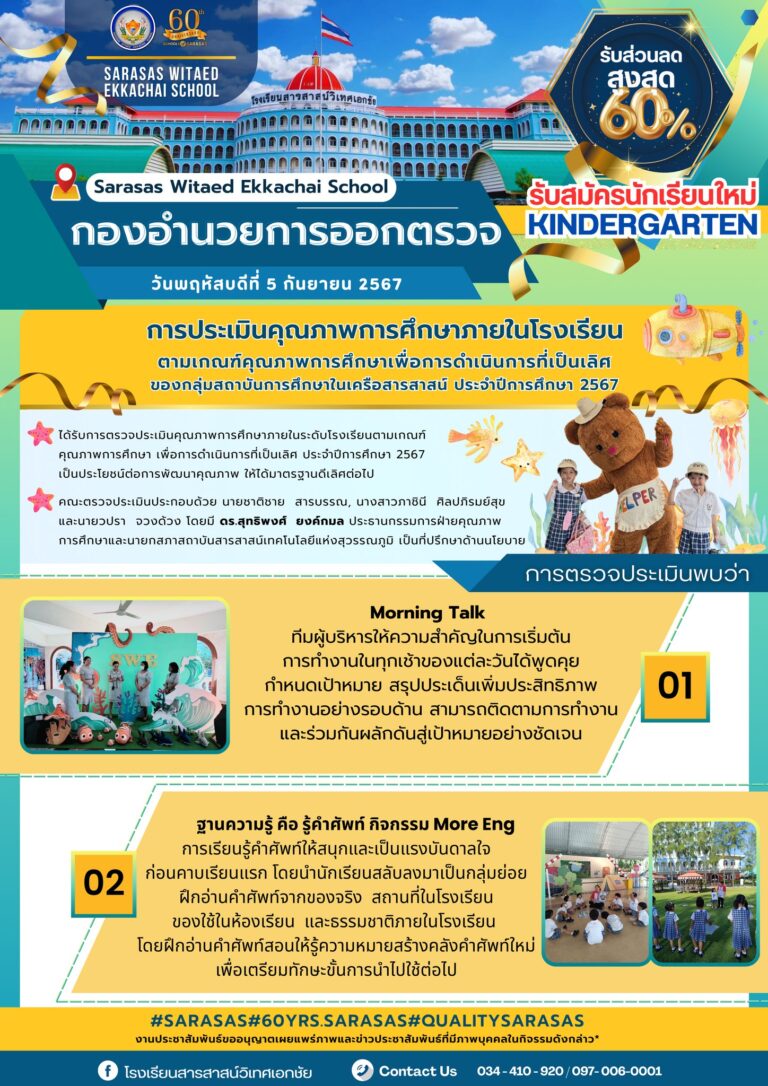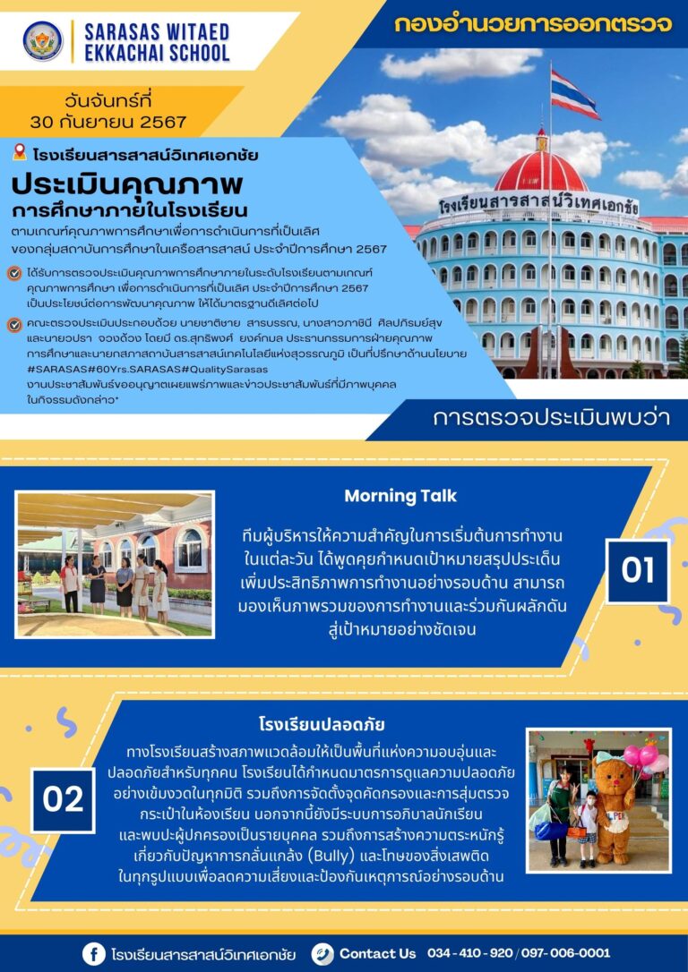 วันจันทร์ที่ 30 กันยายน 2567 โรงเรียนสารสาสน์วิเทศเอกชัย