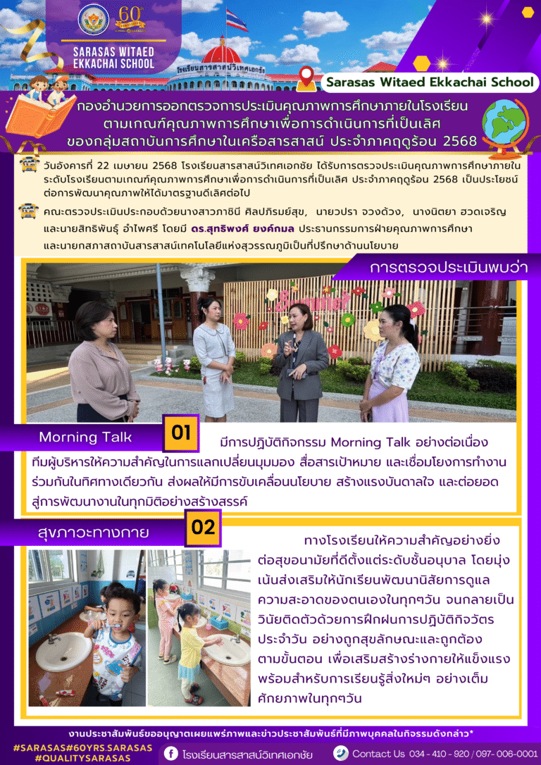 ⭐กองอำนวยการออกตรวจประเมินคุณภาพการศึกษาภายในโรงเรียน ตามเกณฑ์คุณภาพการศึกษาเพื่อการดำเนินการที่เป็นเลิศของกลุ่มสถาบันการศึกษาในเครือสารสาสน์ ประจำภาคฤดูร้อน 2568📝วันอังคารที่ 22 เมษายน 2568📌โรงเรียนสารสาสน์วิเทศเอกชัย⚡ได้รับการตรวจประเมินคุณภาพการศึกษาภายใน ระดับโรงเรียนตามเกณฑ์คุณภาพการศึกษาเพื่อการดำเนินการที่เป็นเลิศ ประจำภาคฤดูร้อน 2568 เป็นประโยชน์ ต่อการพัฒนาคุณภาพให้ได้มาตรฐานดีเลิศต่อไป🙏ค